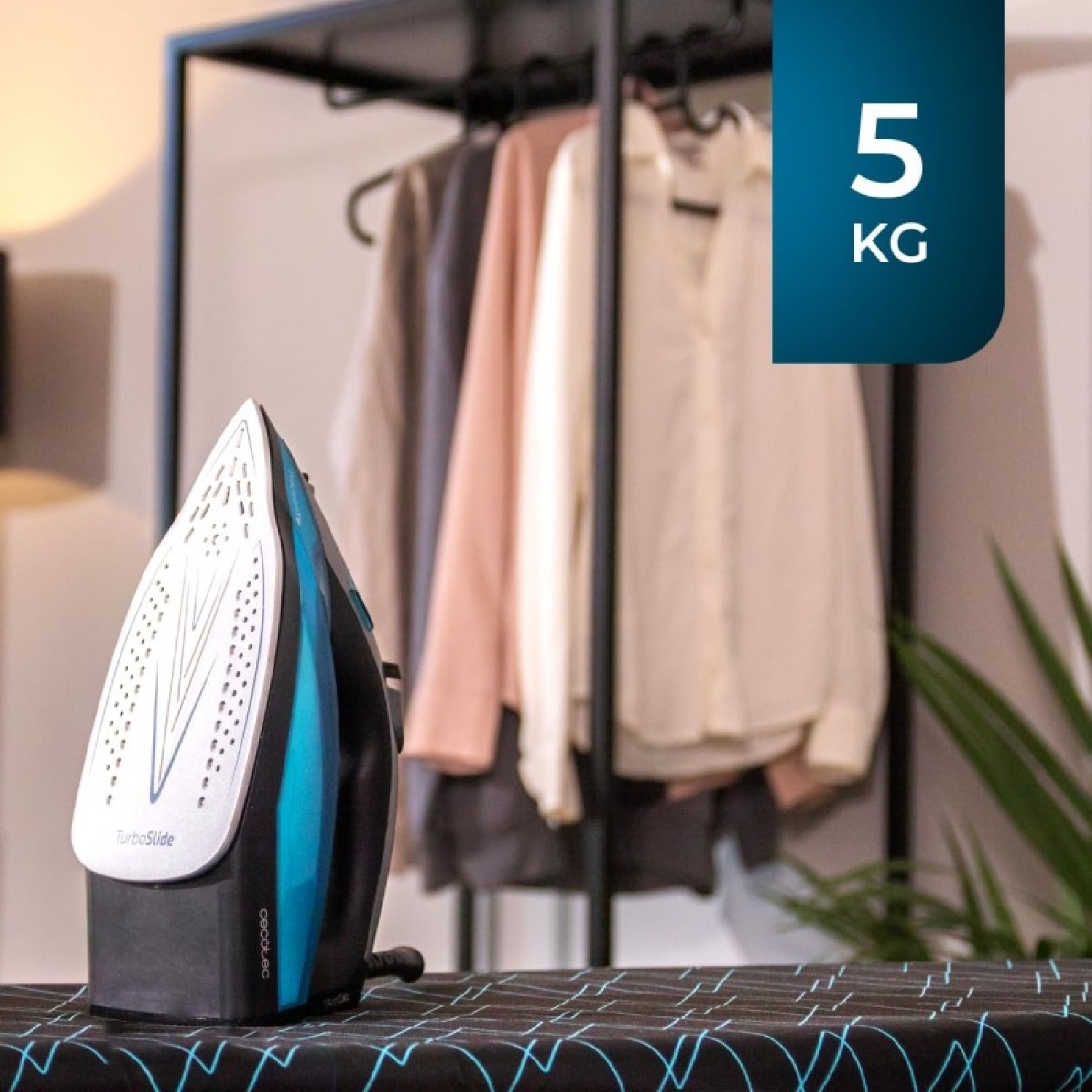 Asse da stiro con superficie di stiratura di 110 x 33 cm.