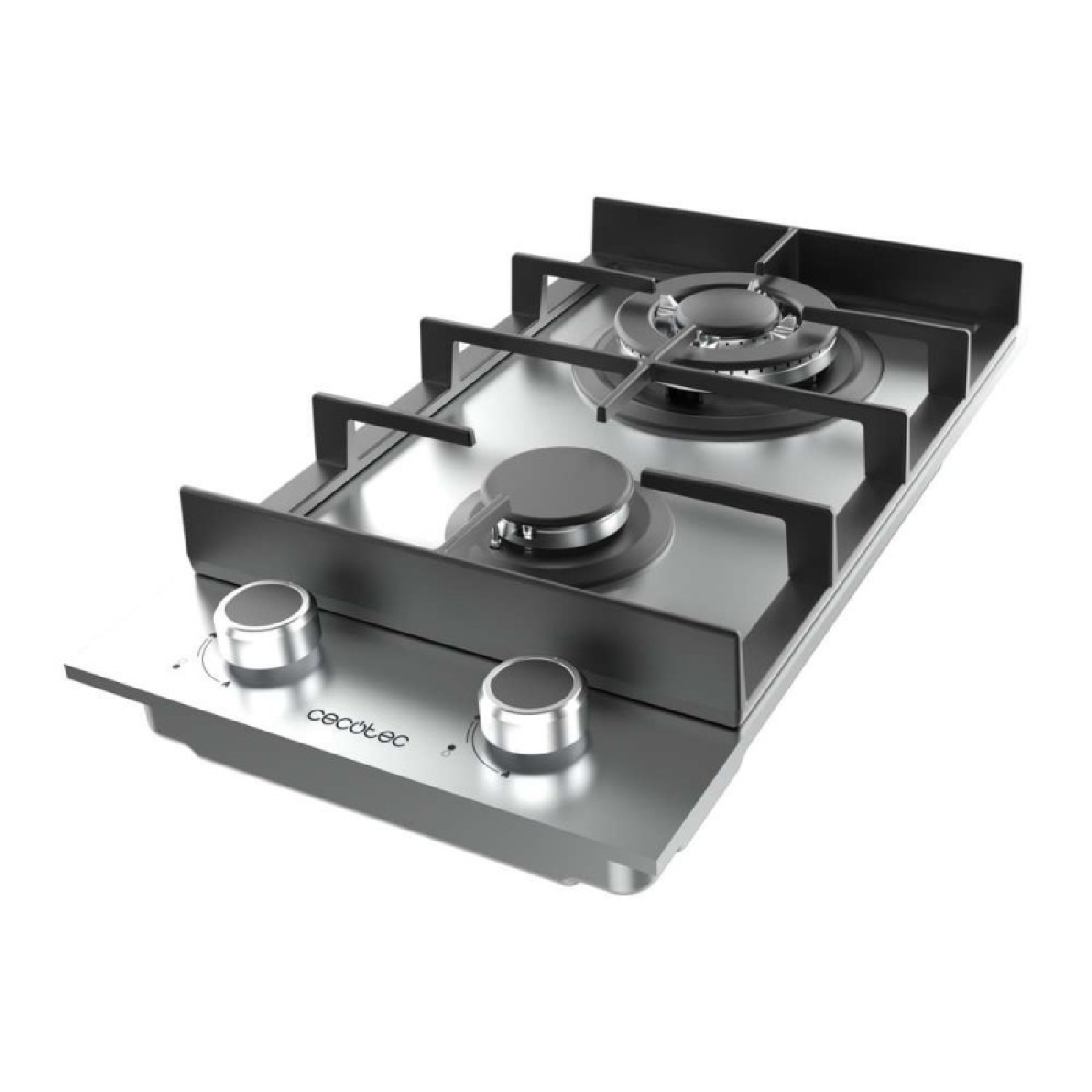 Cecotec Bolero Squad G 2400F Inox – Piano cottura a gas a 2 fuochi, 5,2kW, Acciaio inossidabile, griglie in ghisa, bruciatore WOK a tripla corona, accensione elettronica, valvola di sicurezza, convertibile in gas butano.