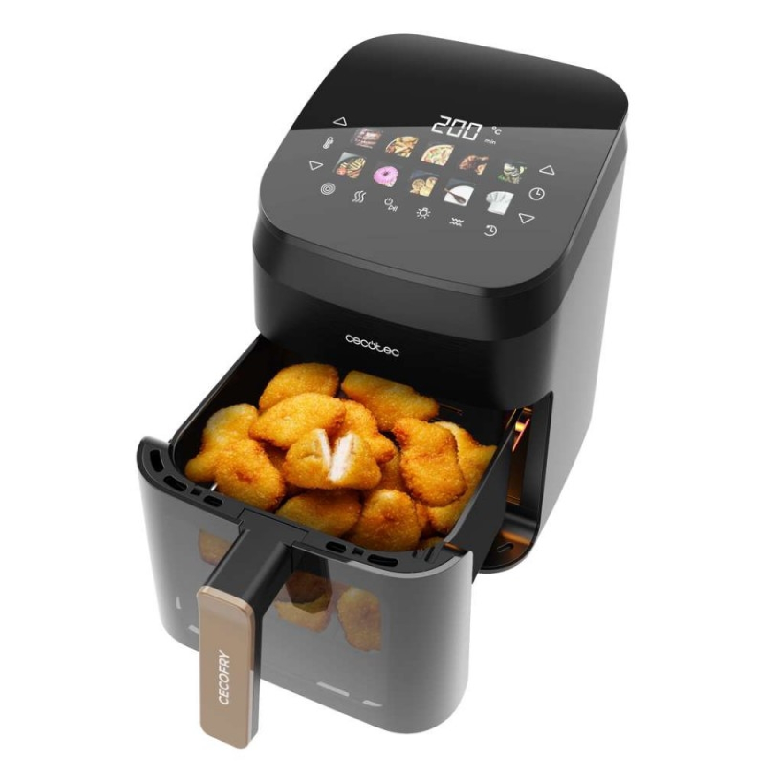 Friggitrice ad aria con doppia resistenza e affumicatore, ideale per una doratura uniforme e un autentico sapore di barbecue sulla carne. Con una capacità di 4.5 litri e una potenza di 1900 W, è perfetta per preparare piatti gustosi e salutari.
