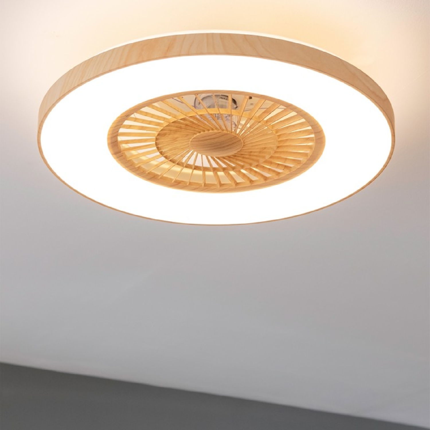 Ventilatore da soffitto di design con motore DC, con potenza di 20W e luce a LED da 45W, con 5 pale da 24 pollici, telecomando, 3 velocità, 3 tonalità di luce disponibili, timer e modalità inverno/estate.