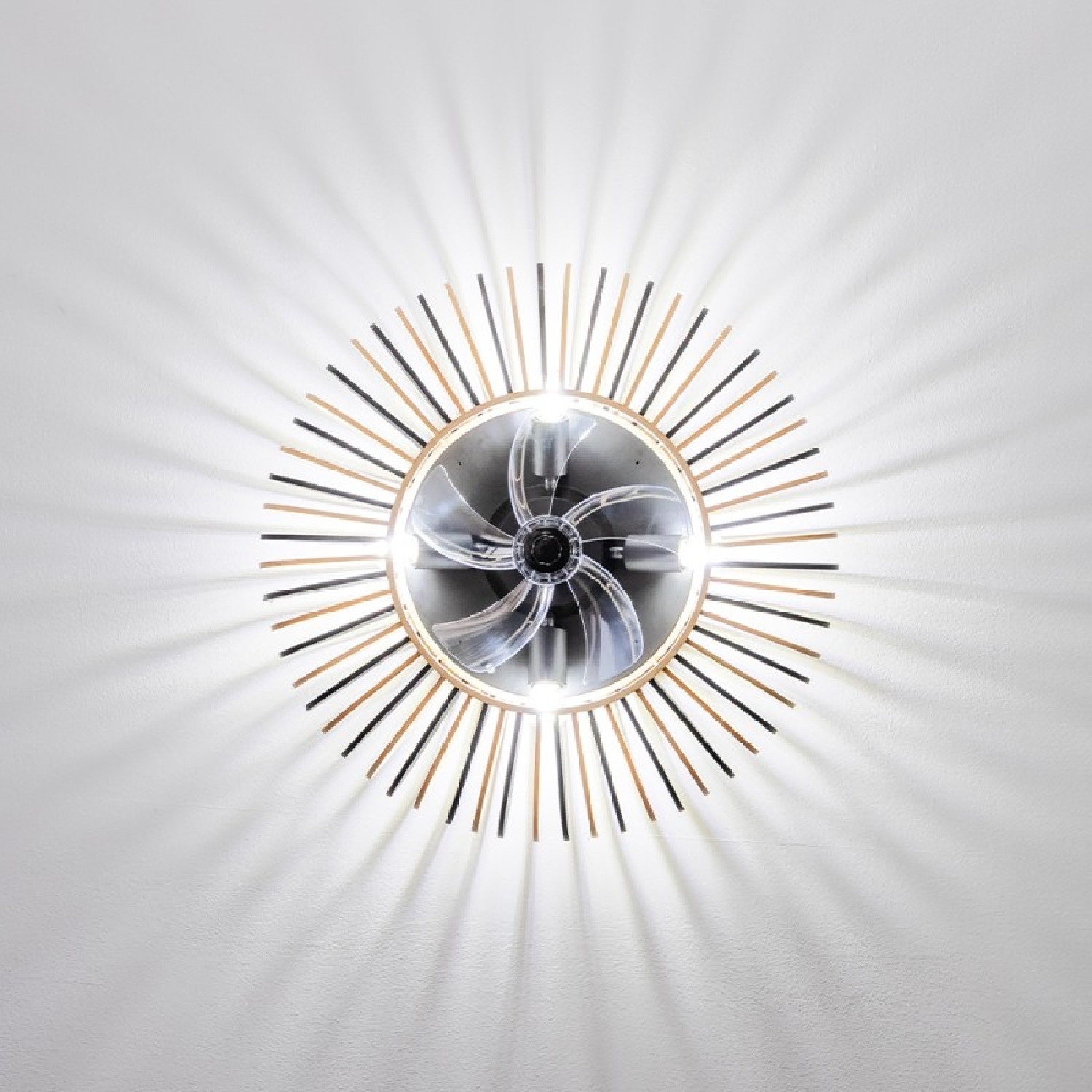 Ventilatore da soffitto di design con motore DC, con potenza di 20W e luce a LED da 45W, con 5 pale da 11 pollici, telecomando, 3 velocità, 3 tonalità di luce disponibili, timer e modalità inverno/estate.