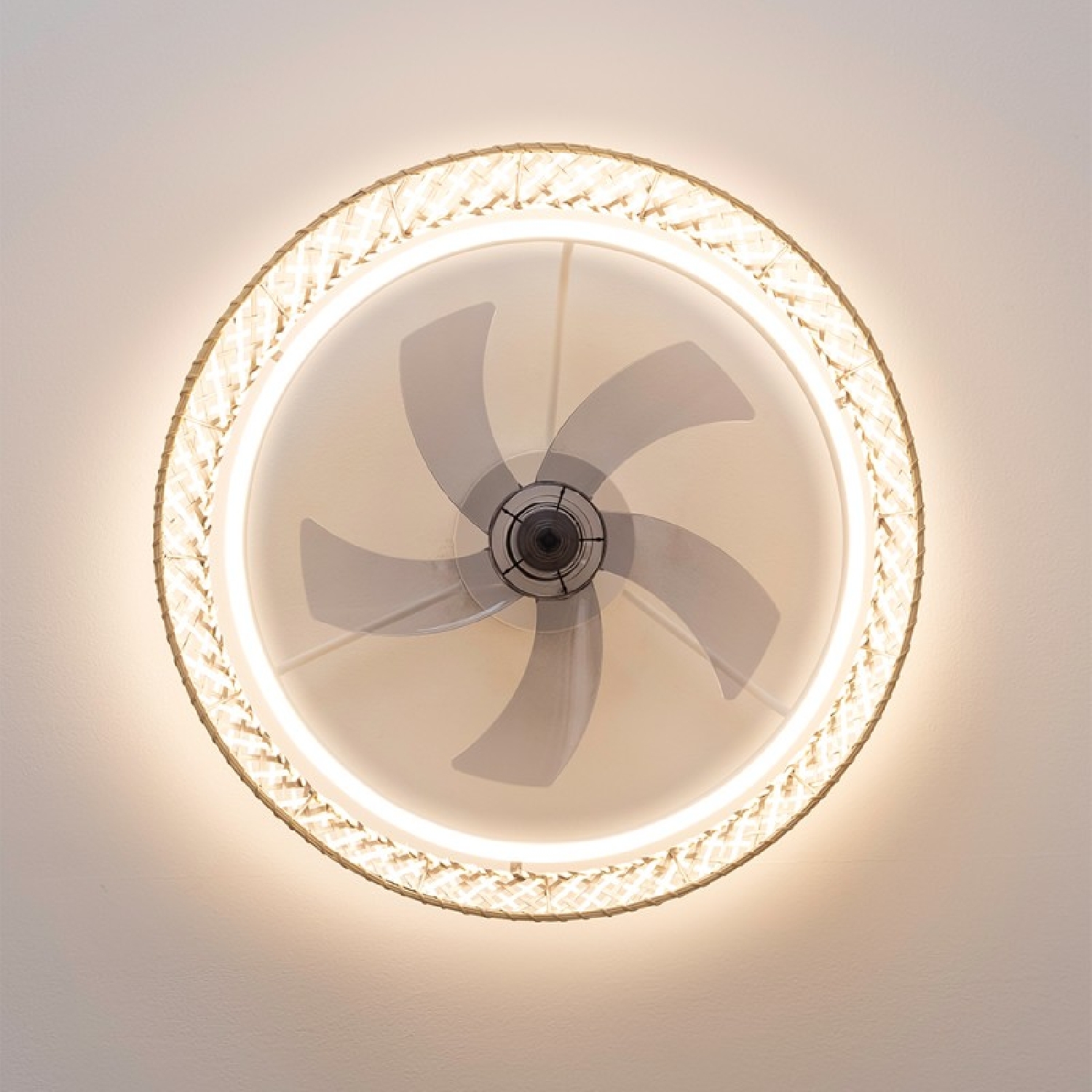 Ventilatore da soffitto di design con motore DC, con potenza di 20W e luce a LED da 45W, con 5 pale da 17 pollici, telecomando, 6 velocità, 3 tonalità di luce disponibili, timer e modalità inverno/estate.