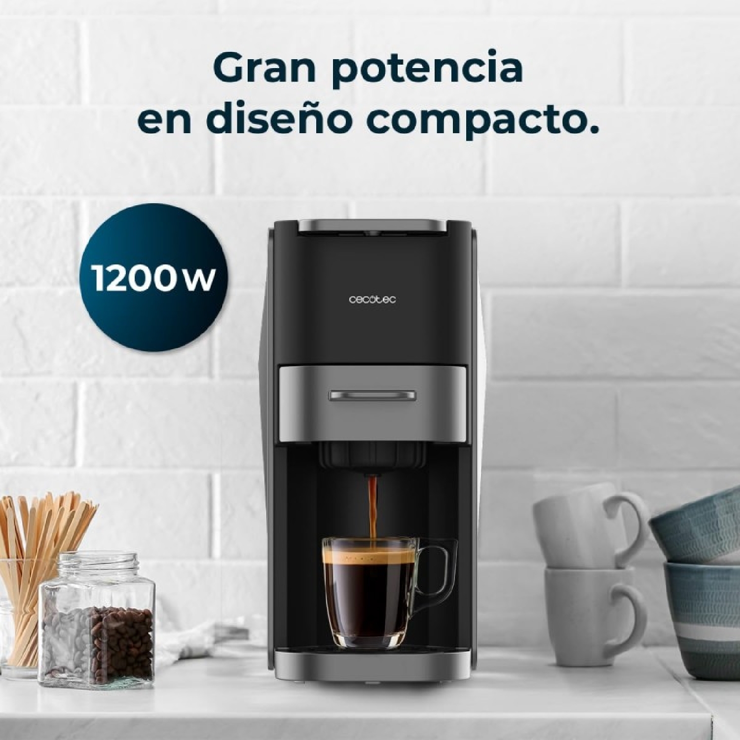Macchina del caffè espresso compatta, 4 in 1. Adatta per caffè macinato, Dolce Gusto, Nespresso e Senseo.