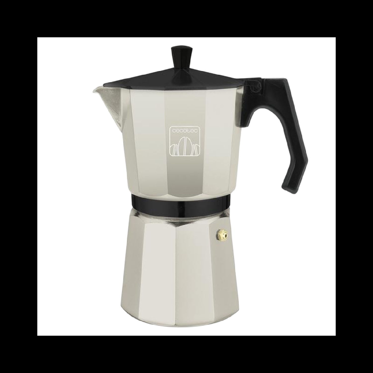 Moka in alluminio con capacità da 12 tazze da caffè di colore beige, adatta a ogni tipo di cucina e facile da pulire.