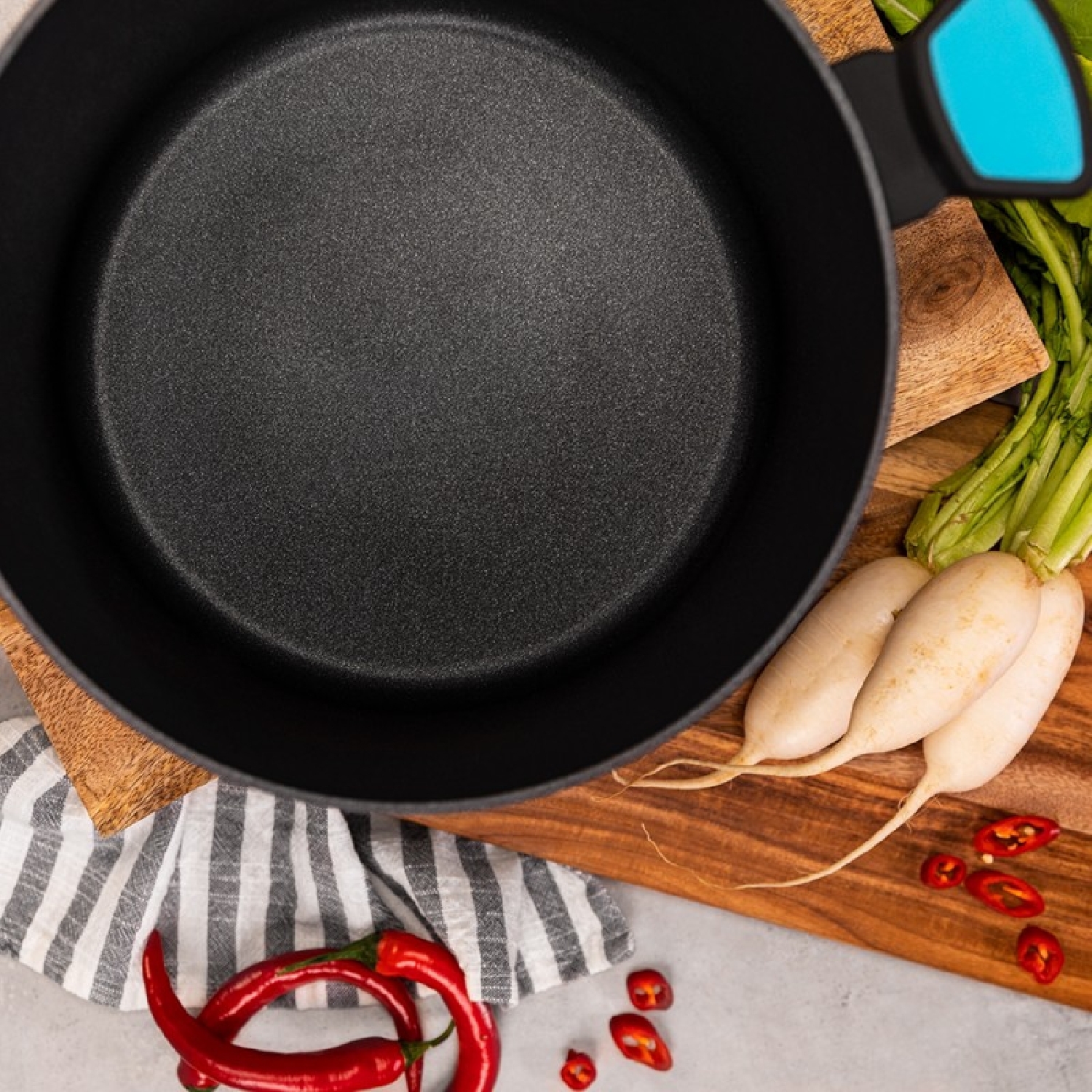 Pentola da 24 cm in alluminio forgiato di alta qualità con 6 strati e rivestimento antiaderente Platinum Plus Teflon® senza PFOA, fondo con diffusore di calore Full Induction, lavabile in lavastoviglie e adatta a tutti i tipi di fornelli, compresi quelli a induzione.