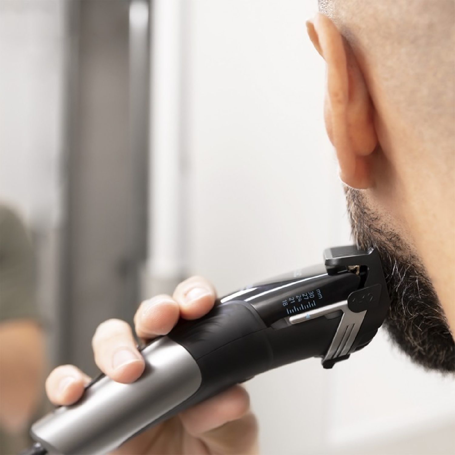 Rasoio tagliacapelli elettrico, display e lame con rivestimento in titanio.