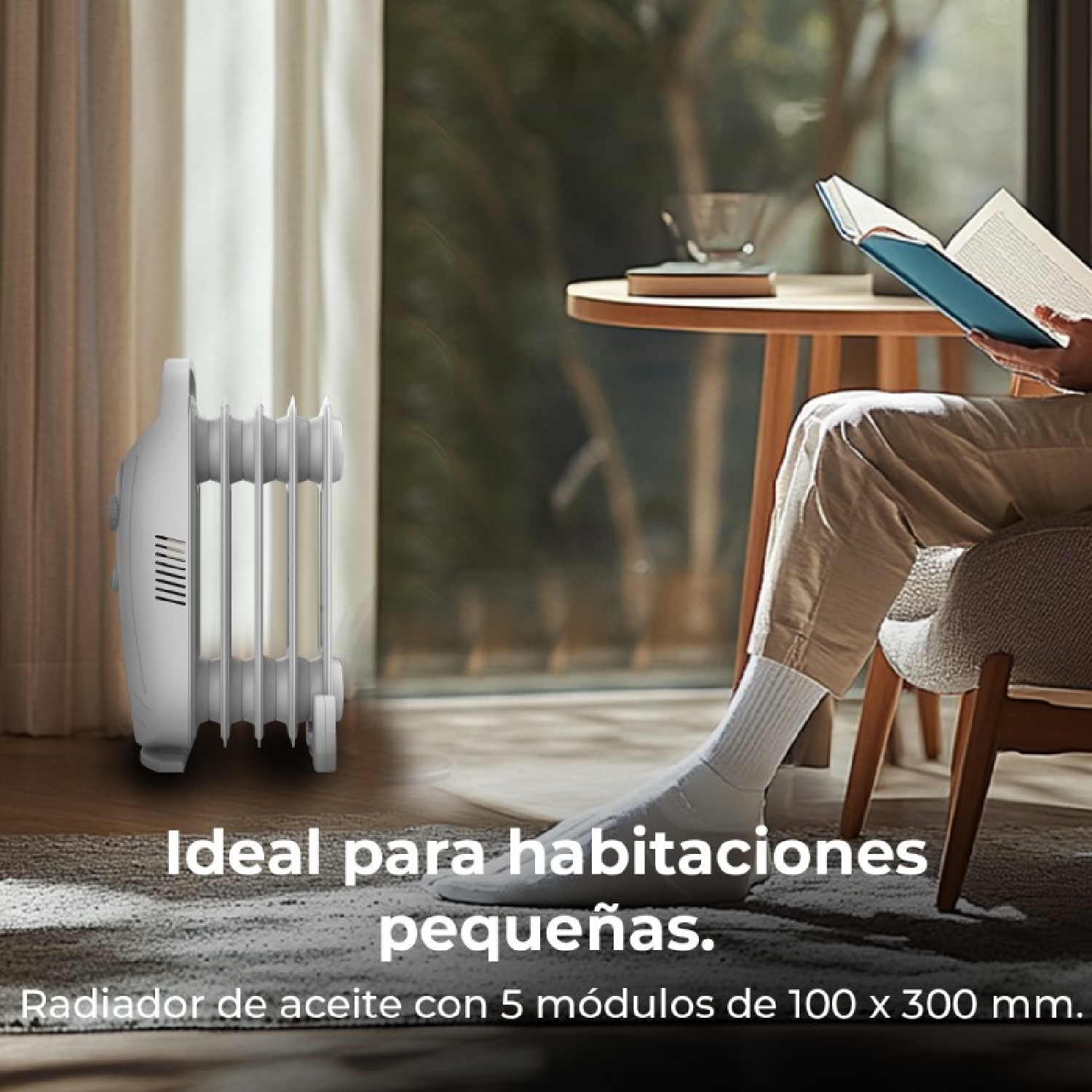ReadyWarm 500 Space White Radiatore elettrico ad olio a 5 Moduli, basso consumo energetico, 500 W, sistema di sicurezza, 10 m2