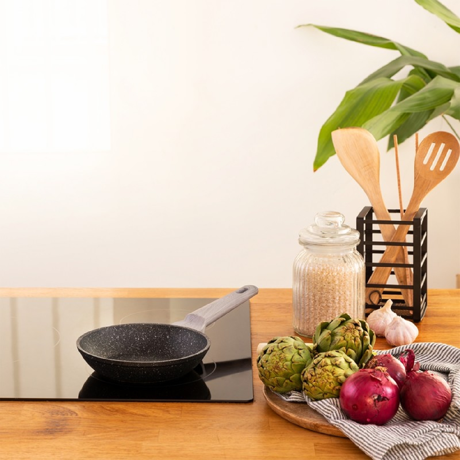 Set di 20-24 padelle in alluminio forgiato di alta qualità, con 6 strati e massimo rivestimento antiaderente Select Teflon™ Nonstick Coating, senza PFOA, con fondo diffusore di calore Full Induction, lavabile in lavastoviglie e adatto a tutti i tipi di fornelli, compresi quelli a induzione. Con fondo indeformabile da 5 mm di spessore.