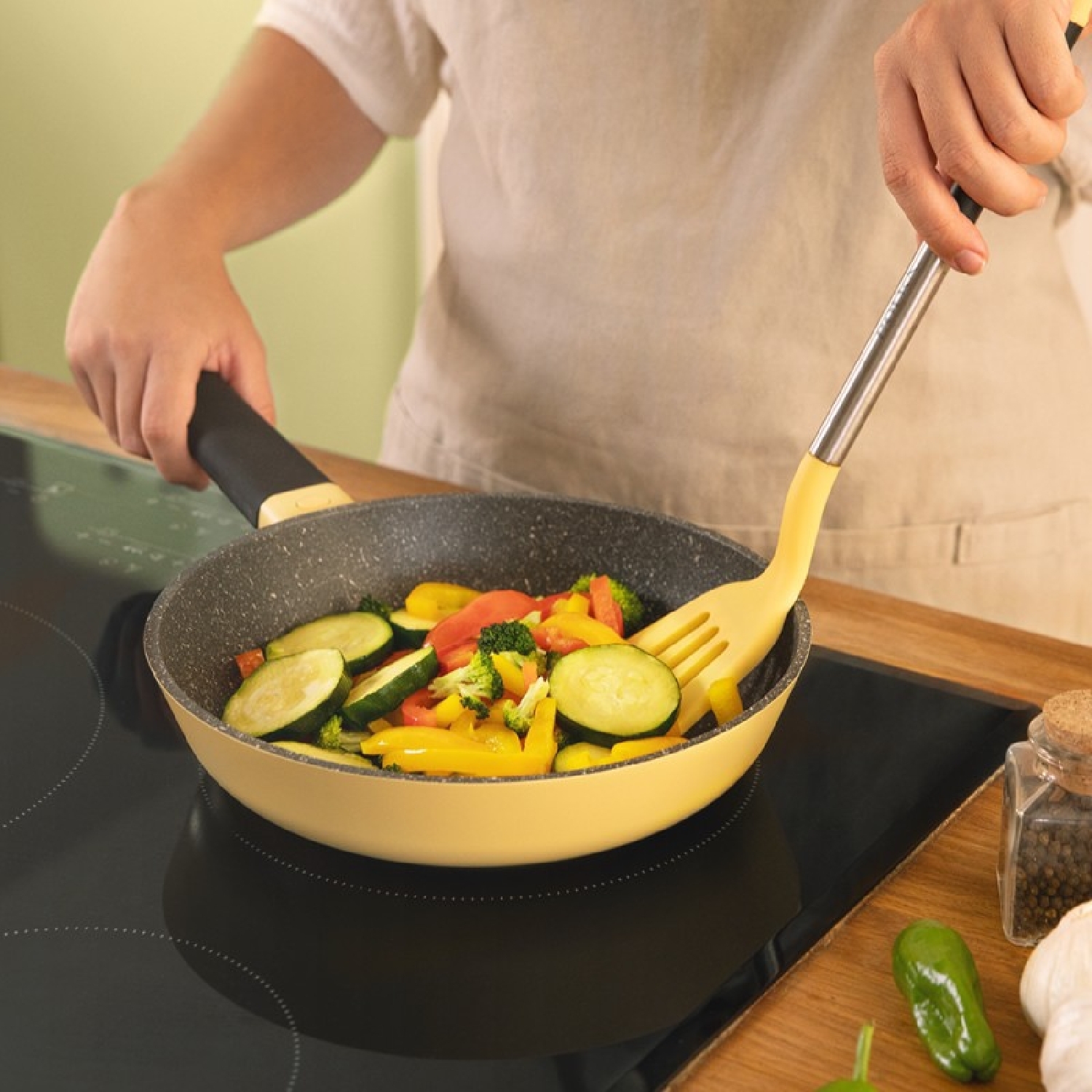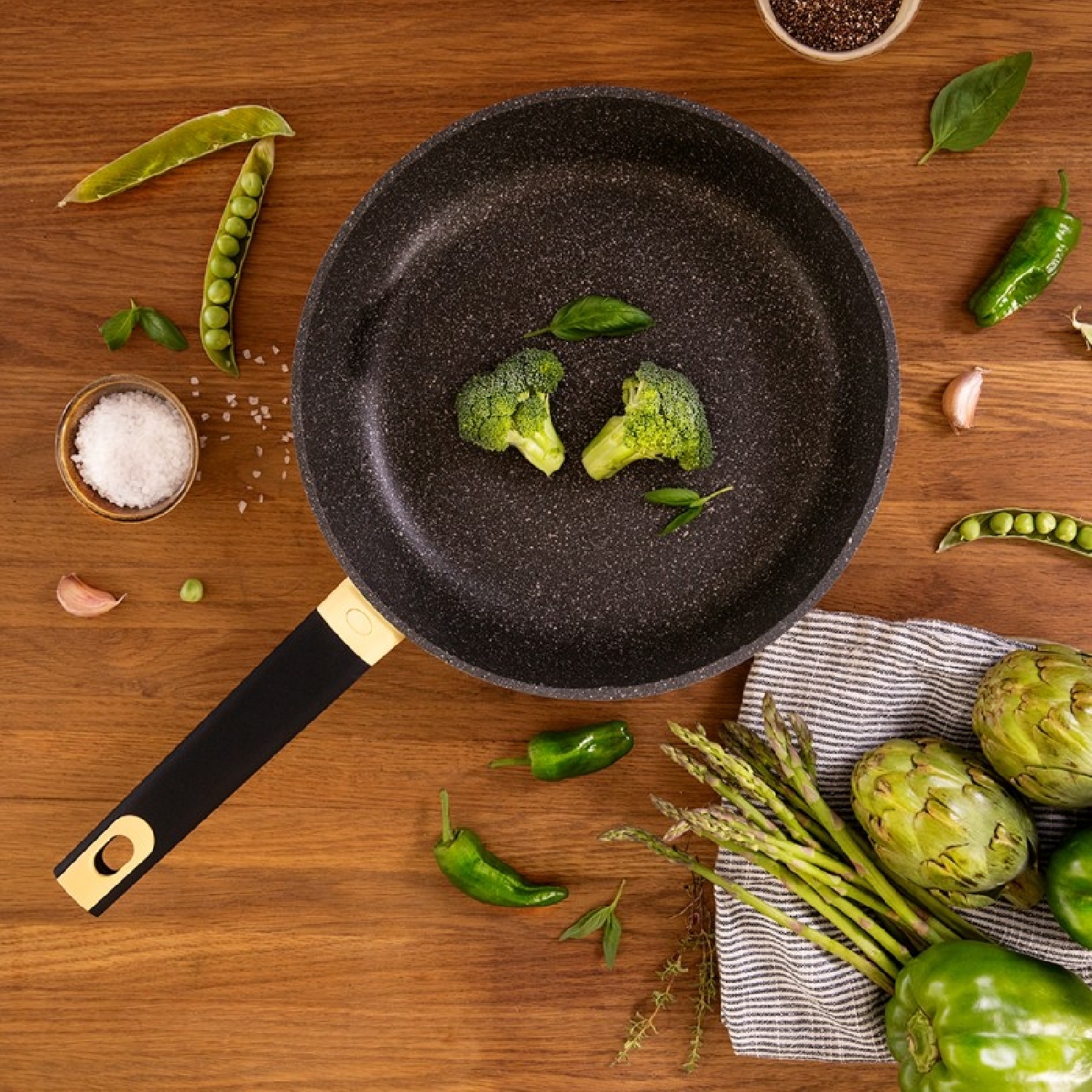 Set di padelle da 20-24-28 cm in alluminio fuso di alta qualità con 5 strati e rivestimento Teflon® Select senza PFOA, base con diffusore di calore Full Induction, lavabili in lavastoviglie e adatte a tutti i tipi di fornelli, compresi quelli a induzione.