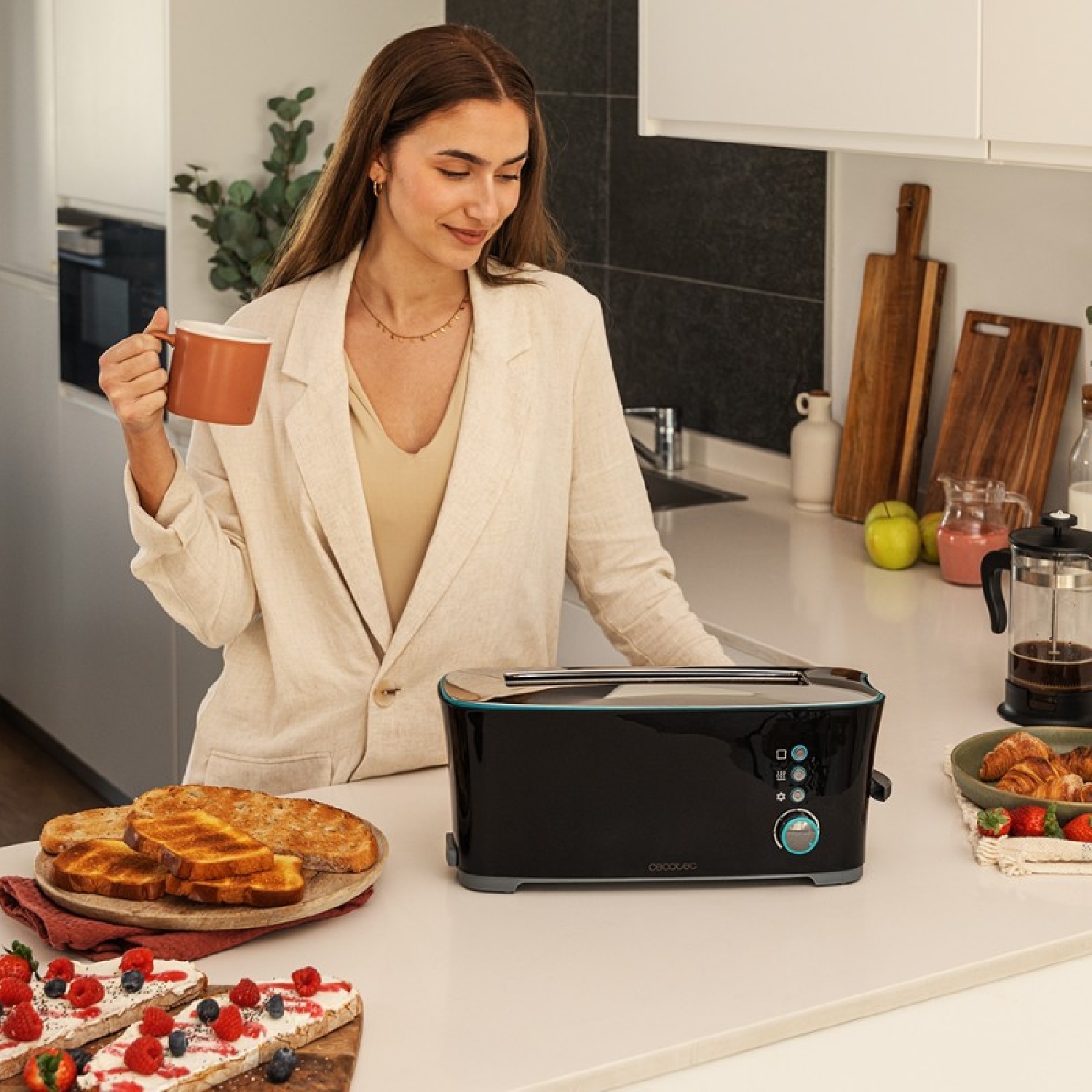 Tostapane in acciaio con 1 fessura larga lunga e capacità da 2 toast.