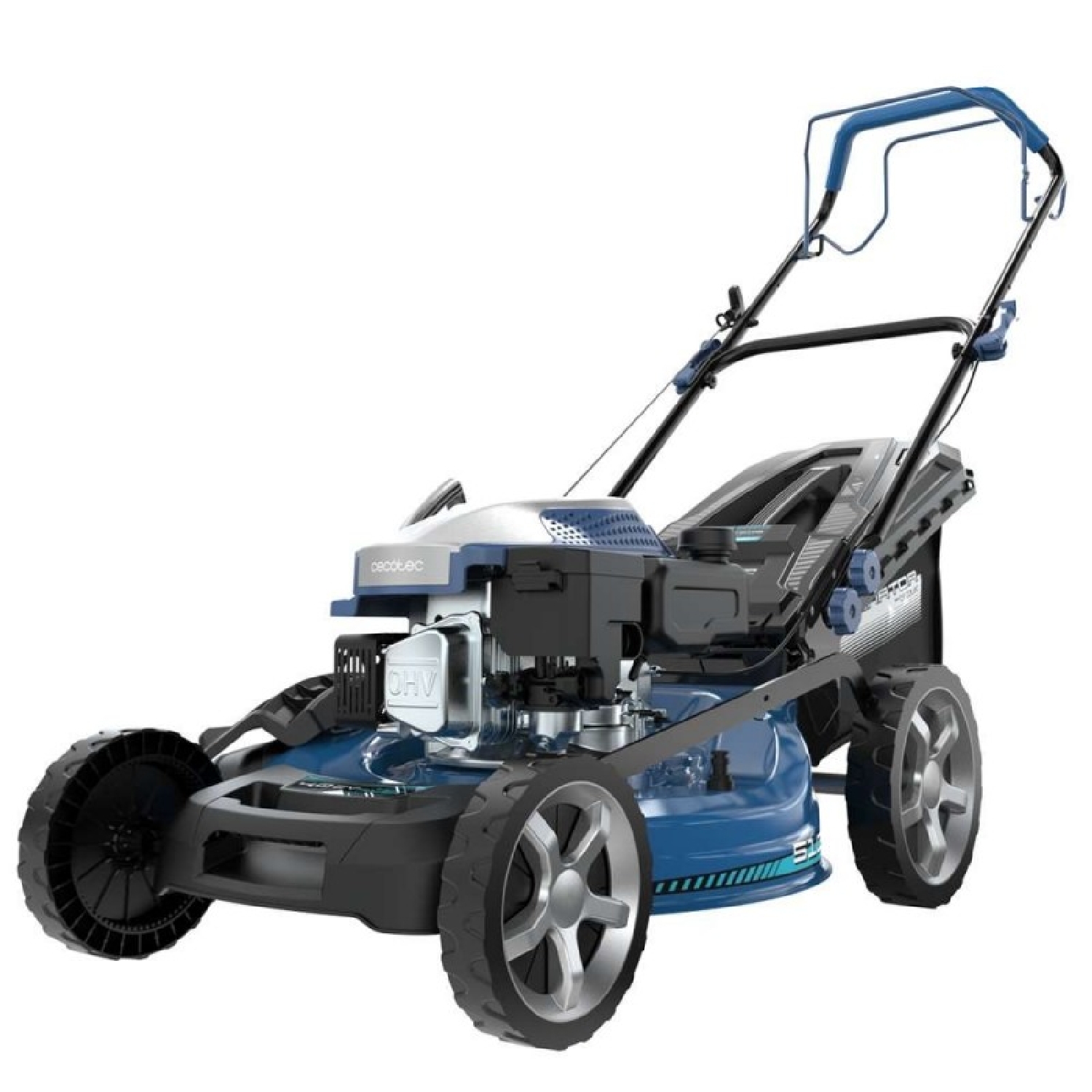 Tosaerba a benzina da 167cc. Corpo in acciaio 51 cm. Sistema Z-Tech con cambio di altezza e pop-up automatico. 4in1 con mulching.