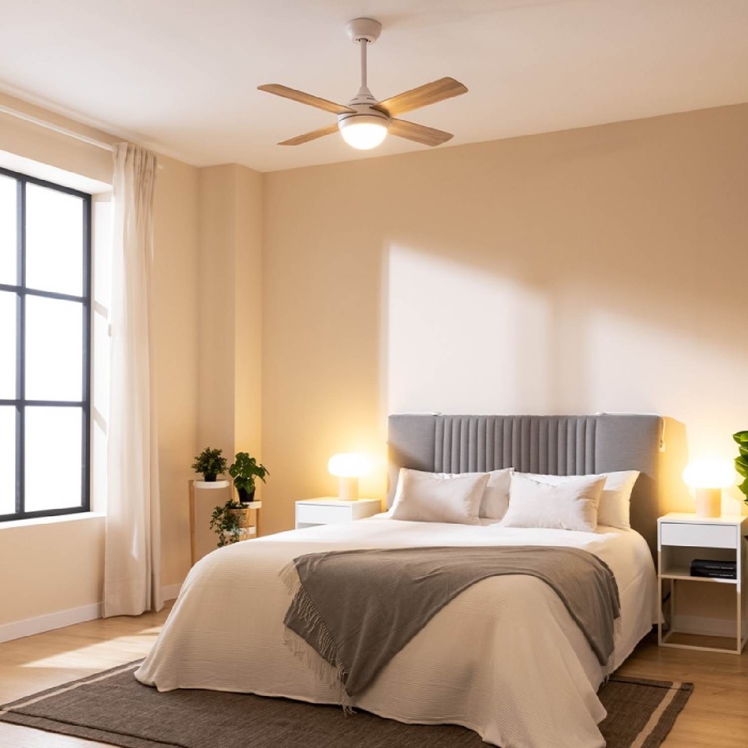 Ventilatore da soffitto, 40 W con motore DC e 42”, luce LED, telecomando, timer, 3 velocità e 4 pale reversibili.